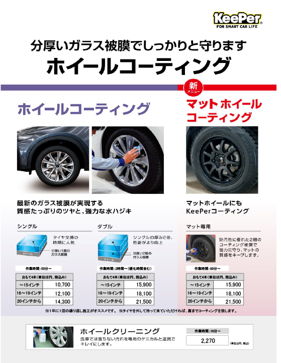 A. 施工内容やお車の状態によって異なります。詳しい作業時間は、メニュー決定時に店舗スタッフがご案内いたします。
