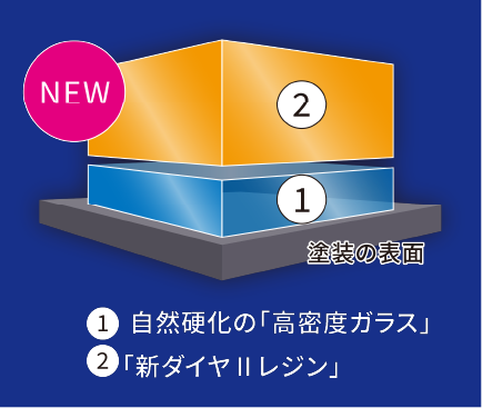 ダイヤIIキーパーは、高密度ガラス被膜をベースに、新開発の有機レジン被膜「新ダイヤIIレジン」を重ねた2層構造。